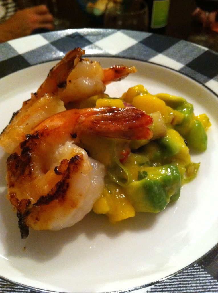 Sautéed shrimp with a healthy dash of Lillet leaning seductively against a salsa bed of avocado, mango, lime, cucumber, mint and bird’s eye chili