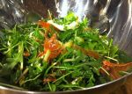 - Exciting salads R Us: baby arugula, prosciutto, Fuji apples sliced “en allumette”, pecan halves and Burrata (best cheese EVER). Dressing was a simple olive oil and apple cider vinegar.