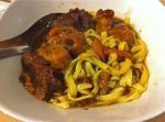 - Slow-cooked Taiwanese beef shank and tendon in a black bean and soy sauce with fresh noodles (cooked excellently by Cynthia)