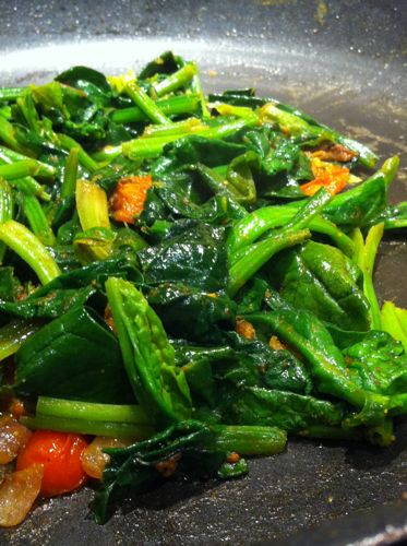 I can never take enough pictures of spinach, I just can’t. These lovely leaves are sautéeing in cumin, coriander, fenugreek and turmeric.