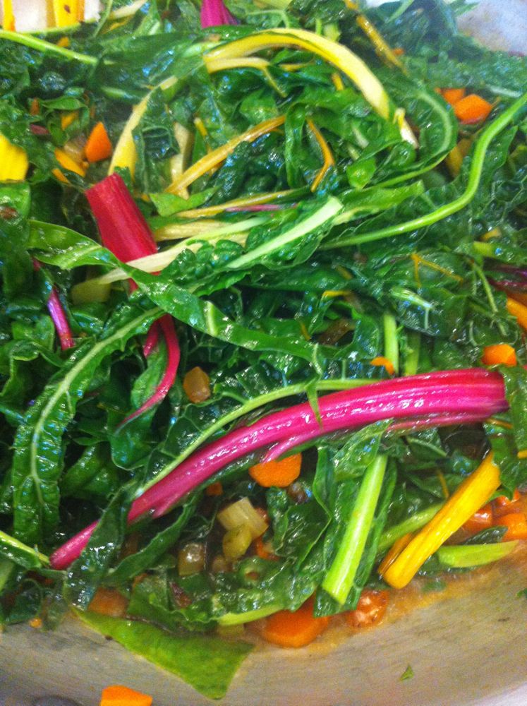 Kale! Chard! Mirepoix! Beautifully fresh dover sole and shrimp! The seafood will be baked to perfection in olive oil and a touch of paprika.