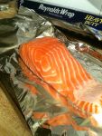 - Behold! A lovely piece of fresh wild-caught salmon bought at this morning’s farmer’s market. Look at ‘er, isn’t she a beauty?