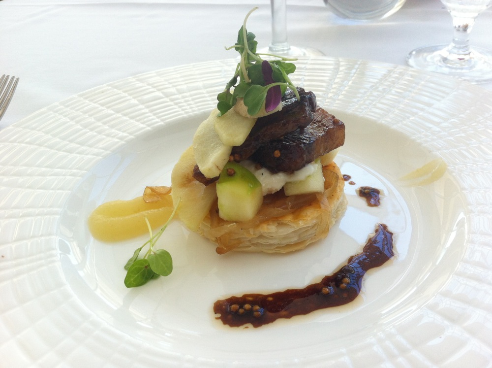 Tostada with perfectly cooked pork belly, green apple and smear of pear purée. (From the Herb Ritts inspired menu)