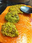 - Ethically farmed fresh salmon sans hormones about to be slathered in whole grain mustard.