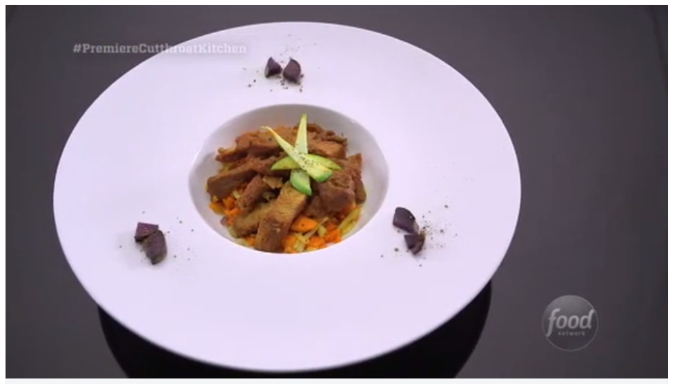As the American Thanksgiving season is upon us, I thought I’d share my recipe (serves 4-6) for Madrasi Curry Turkey served atop a yam-apple slaw that I had entered into a TV chef competition on the Food Network’s Cutthroat Kitchen, hosted by *the* Alton Brown. Prepare the turkey and slaw simultaneously and you should be done and plating in an hour.